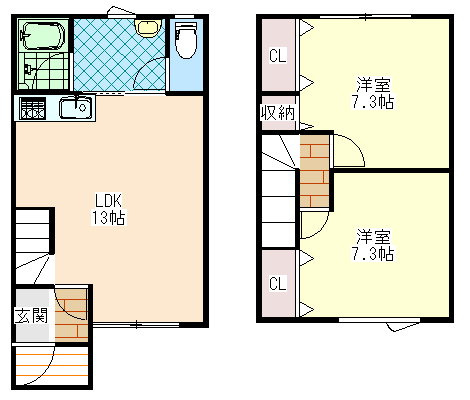 | 間取り | 2LDK(LDK13.0・洋室7.3・洋室7.3) | 面積 | 63.99㎡ |