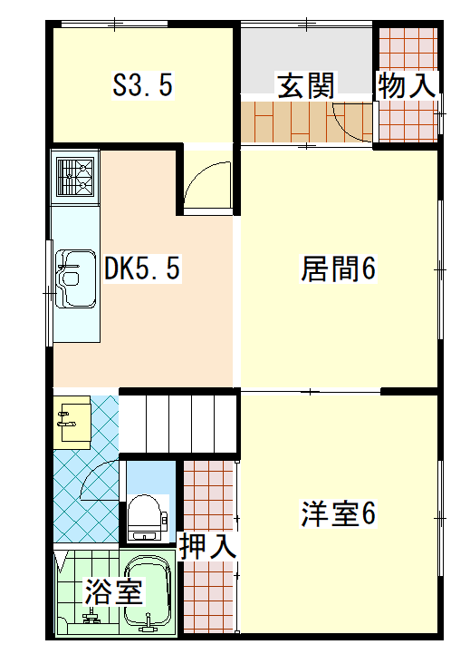 | 間取り | 3SLDK | 面積 | 77.96㎡(1F 49.61㎡・2F 28.35㎡) |